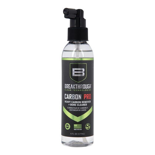 The Breakthrough Clean Technologies® Carbon Pro is a water-based, ammonia-free, cleaner that removes heavy carbon and lead deposits. Utilizing a proprietary blend of chemical surfactants and detergents, Carbon Pro effectively works to neutralize all corrosive residues preventing damaging rust and corrosion without etching or harming the barrel’s steel surface. With no noxious fumes or hazardous chemicals, Carbo Pro is a safe and effective choice when it comes to removing stubborn carbon & lead build-up and cleaning the bore of your firearm.