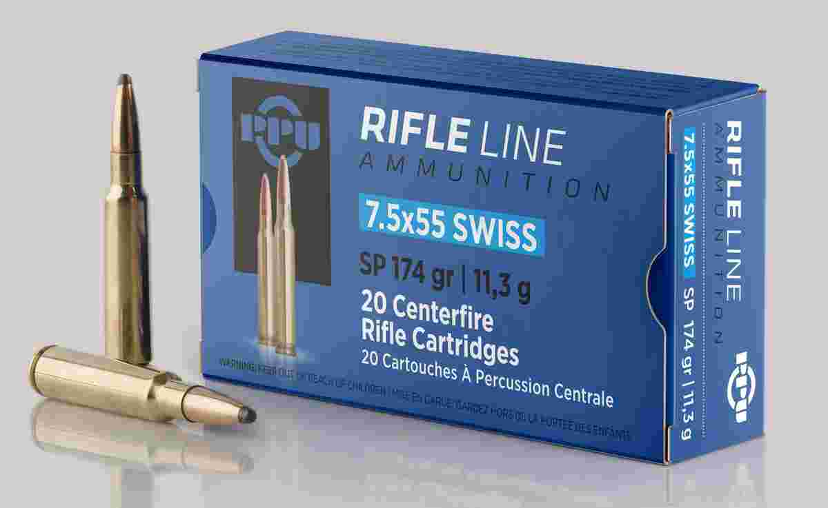 PPU Rifle Ammunition 7.5x55mm Swiss 174 gr SP 2525 fps – 20/ct